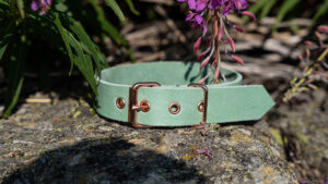 We like dogs and we like to work with leather – So it was an easy decision to make dog accessories. All our designs will first be tested for comfort, safety, usability and durability by our own dogs. For now we make all the accessories with oiled leather (Fettleder) and hardware, that is stable and meant to be used for dog accessories.